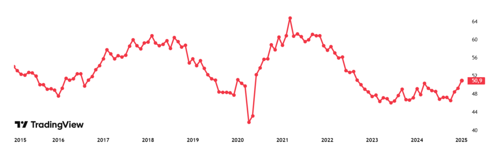 - Por encima de 50 → Expansión del sector